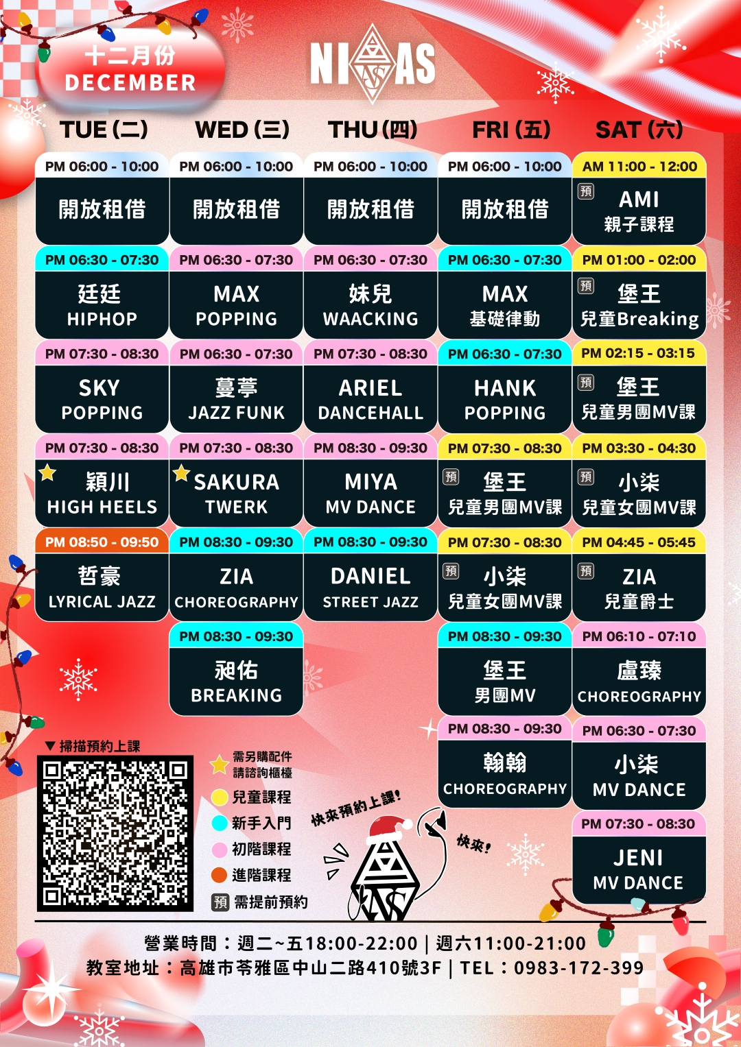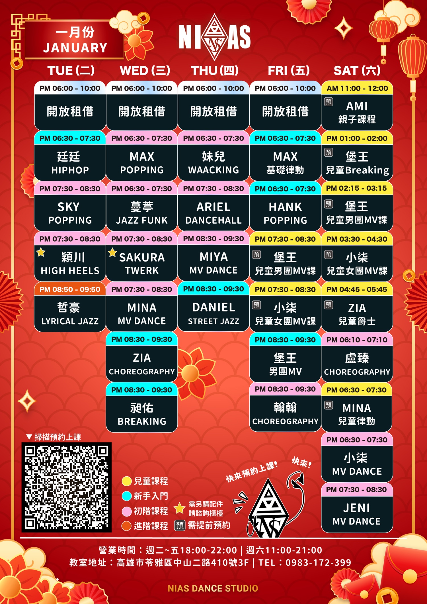尼亞斯舞蹈表演藝術學院-每月最新課表